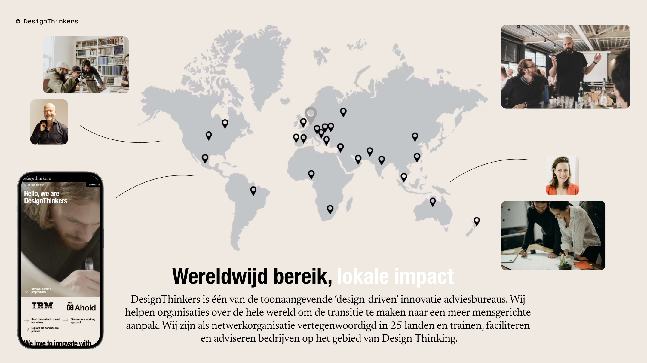 DesignThinkers werd meer dan 20 jaar geleden in Nederland opgericht met een duidelijke missie: organisaties helpen bij het ontwerpen van diensten die de mens centraal stellen. Wat begon in Amsterdam is uitgegroeid tot een wereldwijd netwerk met teams over de hele wereld en een groeiend netwerk in de regio. Bij DesignThinkers Academy ontwikkelen professionals de vaardigheden om innovatie mensgericht, creatief en toekomstbestendig aan te pakken. Onze trainingen combineren Design Thinking, Systems Thinking, Futures Thinking, Creatieve Facilitatie en de kracht van AI, zodat overheden en bedrijven strategie kunnen vertalen naar oplossingen die écht impact maken.